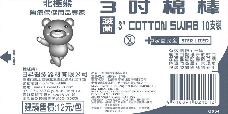 北極熊 滅菌 3吋竹棉棒
